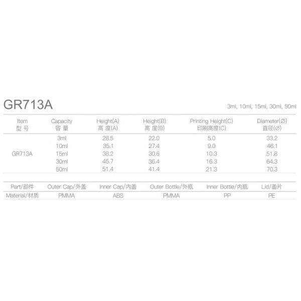 Capacity : 3ML 10ML 15ML 30ML 50ML
